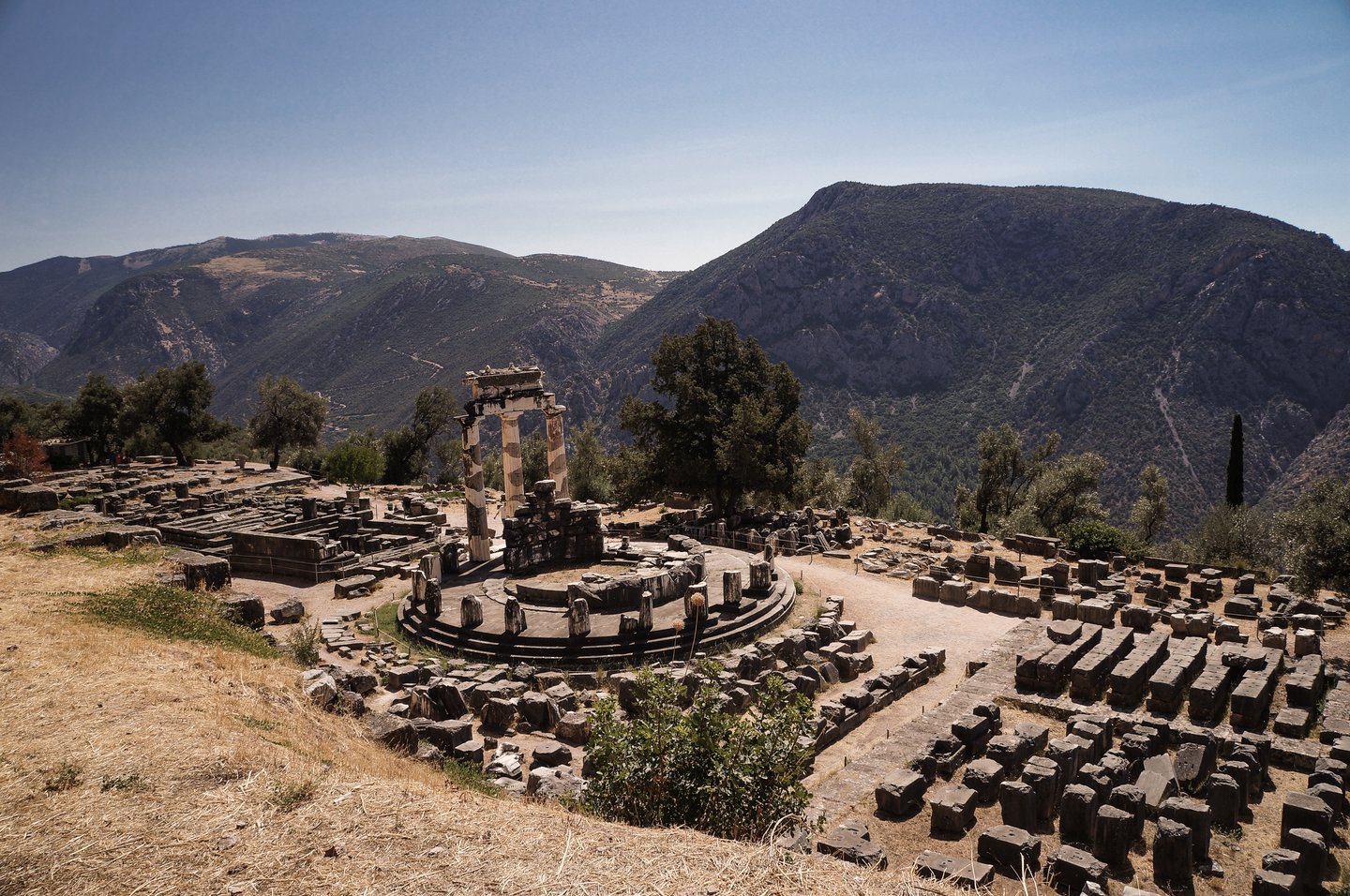 The Temple of Athena greets you as you arrive, and the ancient ruins are scattered along the side of the mountain as you make your way up the Sacred Way, until you find yourself at the stadium at the top of the site, with panoramic views around you.